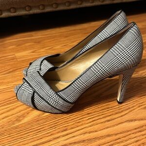 Talbots Houndstooth Print Peep Toe Pump Heels Size 8 Black & White