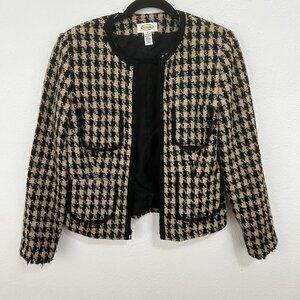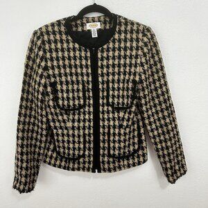 Talbots Houndstooth Tweed Blazer Skirt Set Sz 4 Wool Blend Pockets Zipper Front