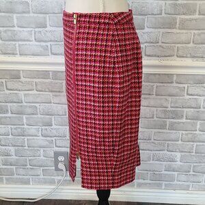 This sophisticated Talbots Houndstooth Tweed Pencil Skirt features an offset zipper, perfect for adding a touch of elegance to any wardrobe. Its wool blend material offers warmth and comfort, ideal for cooler seasons. Inspired by classic academia style, it channels a Gilmore Girls aesthetic effortlessly.
