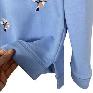 Super cute and fun hummingbird sweatshirt. Embroidered hummingbirds on front. Crew neck, long sleeves, side slits. Blue. Size XS. Please see photos for measurements.