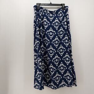 Talbots Ikat Midi Skirt Blue Button Front Casual Sz 16