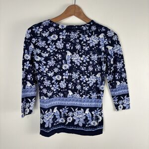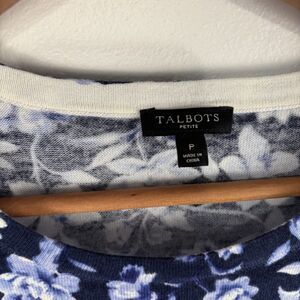 Talbots India Ink Medallion Bird Toile Sweater 3/4 Blue Sleeve Size Petite