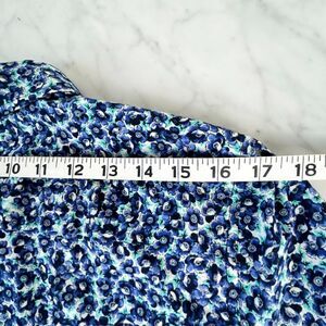 Talbots Ink Blue Purple Green Floral Print Long Sleeve Blouse - Women's 14