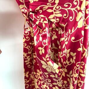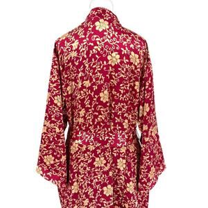 Talbots Intimates Silk Cranberry/Tan Floral Robe & Nightgown Size Medium Petite