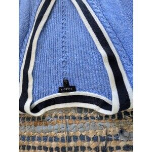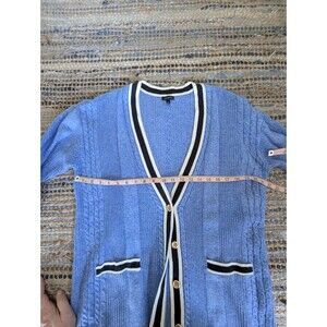 Talbots Iris Blue Cable Knit Tipped Girlfriend Cardigan Sweater L 4 Button