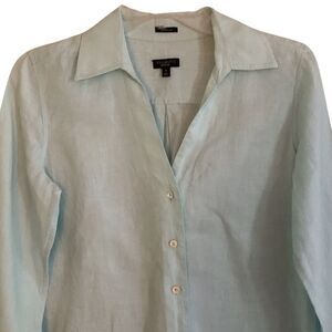 Talbots Irish Linen Button-Up Shirt Womens Sz 8 Pastel Blue Long Sleeve Classic