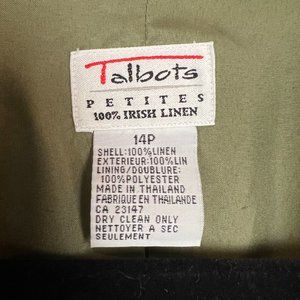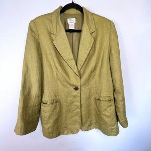 Talbots Irish Linen Olive Green Blazer Single Button Size 14P