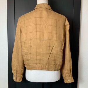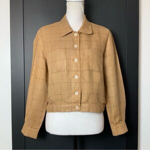 Talbots Irish Linen Plaid Button Front Bomber Style Jacket Size 6 Petite