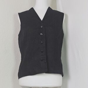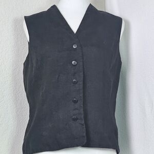 Talbots Irish Linen Womens Black Button Down Vest Sz 10