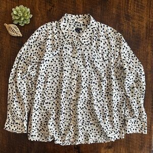 Talbots | Ivory & Black Floral Roll Tab Sleeve Button Down Blouse