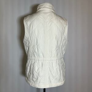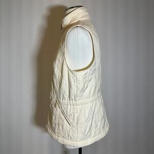 Talbots Ivory Diamond Quilted Vest Fleece Lined Gold Zip Up