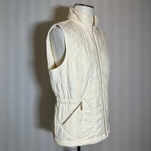Talbots Ivory Diamond Quilted Vest Fleece Lined Gold Zip Up Womens Size Medium M