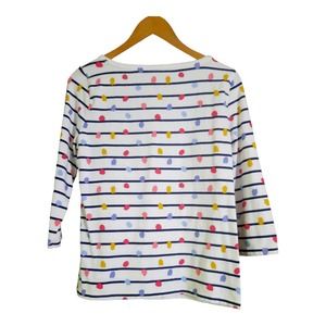 Talbots Womens Ivory & India Ink Dots & Stripes Three-Quarter Sleeve Boat Neckline Top Navy Stripes with Multicolored Pink Red Blue Pink Yellow Art Dots Size Medium Petite, Please See Measurements For Best Fit, Nice Condition!