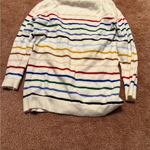 Chic crew neck sweater featuring bold, colorful stripes. Perfect for everyday style.