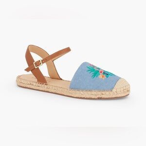 Talbots Izzy D'Orsay Embroidered Chambray Espadrille Sandals SIze 7.5 NIB