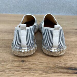 Talbots Izzy Espadrille Loafer Flat Shoes Size 9 White Navy Stripe Metallic NWOB