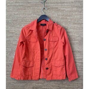 Talbots Jacket 100% Cotton Collared Button Front Pockets Orange Women Size XS