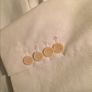 White jacket with button accents on sleeves. Great for work!