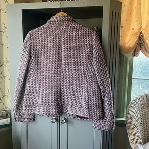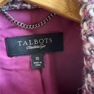 Absolutely gorgeous Talbots Jacket size 10. In perfect condition, my mother has gone up in size so she has to let it go. Very feminine pink, purple and grey colors.