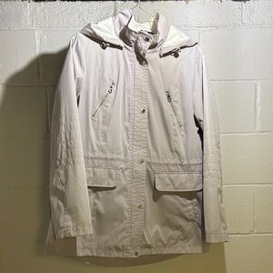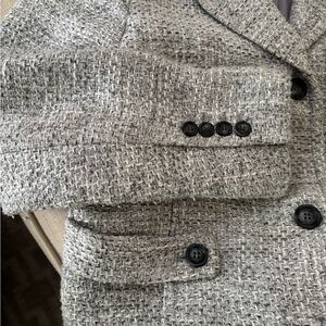 Gray Tweed Jacket with belted back and front button detail.Fully lined