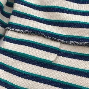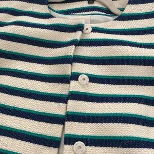 Ivory, Navy and Teal stripe jacket with snap front. Only worn a couple times