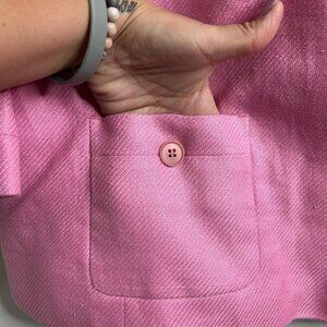 Talbots Jacket Blazer Jacket Womens 22W Pink Linen Button Front 3/4 Sleeve
