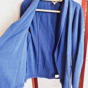 Talbots Jacket Shawl Collar Seaming Detail Half Zip Moto Style Blue Petite Large