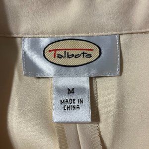 NWT Talbots Jacket Style Top, size M. 100% polyester, cream with a brushed suede feel, with snaps instead of buttons. It measures 21 inches from armpit to armpit. Non-smoking household.