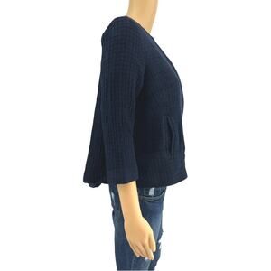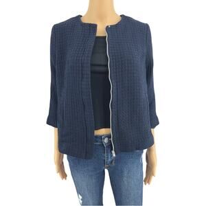 Talbots Jacket US 6 Womens Navy Blue Cotton Basketweave 3/4 Sleeve Zip Up w/ Pockets