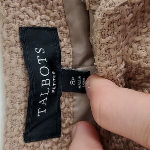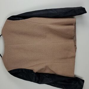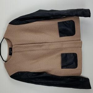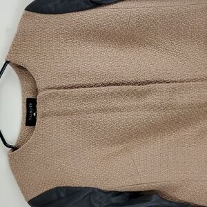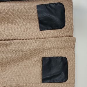 Talbots Jacket Womens 8P Faux Leather Full Zip Textured Boucle Camel Black