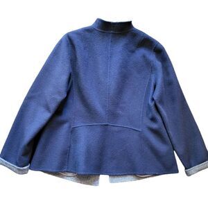 Talbots Jacket Women's Large Petite Blue Gray Double Faced Felted Wool Cozy Open
