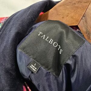 Talbots Jacket Womens Large Red Navy Plaid Corduroy Puffer Shacket Button Snap