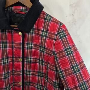 Talbots Jacket Womens Large Red Navy Plaid Corduroy Puffer Shacket Button Snap
