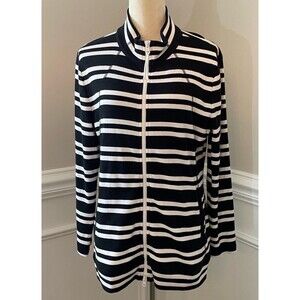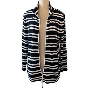 Talbots Jacket Women’s Size Petite XL Black White Stripe Full Zip Lightweight