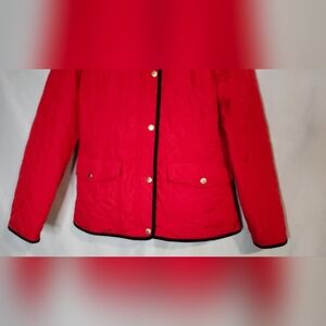 Talbots Jacket Women's Size Small Red Black Quilted Coat Corduroy Trim Classic