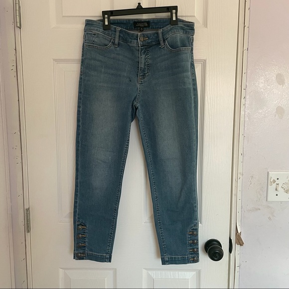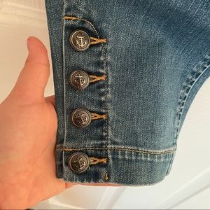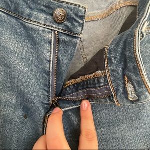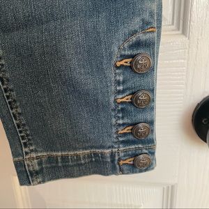 Description: These jean are in good condition it has no rips. In the third picture you can see there is a black dot that's paint stain. From there there aren't anymore stain. The zipper and button work perfectly! In the bottom of the jean in both side they have 4 buttons that look really nice! This jeans can be used for Casual Looks, and Elegant looks!