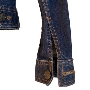Talbots Jean denim jacket front pockets metal buttons banded bottom size P C b
