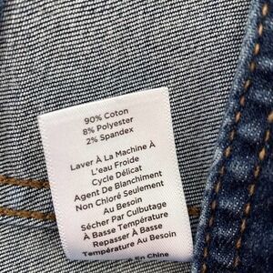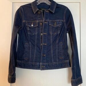 Talbots Classic Jean denim jacket front pockets metal buttons banded bottom 90% Cotton 8% Polyester 2% Spandex.