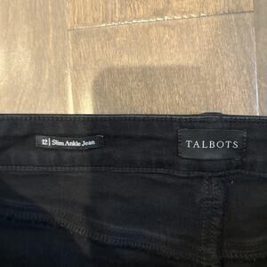 Talbots Jeans Womens 12 Black Denim Slim Ankle Stretch Five Pocket Mid Rise