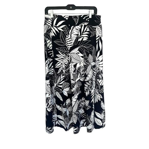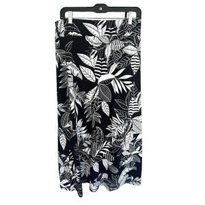 Talbots Jersey Maxi Skirt Silhouette Ferns Tropical Floral Black Stretch Small S