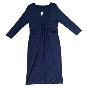 #sheathdress #talbots #jersey #draped #vneck #navy
