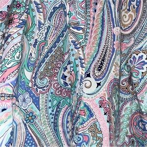 Elevate your style with this vibrant paisley print top. Featuring a blend of blue, pink, and green hues, this top is perfect for any occasion. Enjoy the comfort and elegance it brings to your wardrobe.