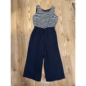 Talbots Jumpsuit Sleeveless Petite Size 8 Navy and White Stripes