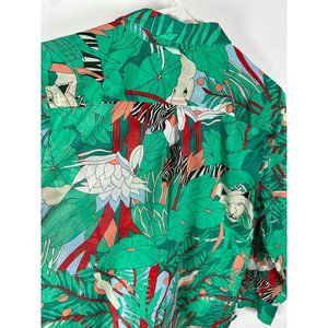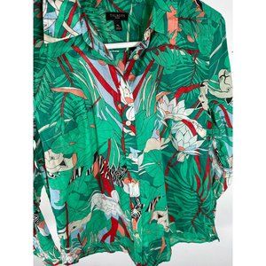 Talbots Jungle Tiger Blouse Top Button Up Womens Medium Petite MP Colorful