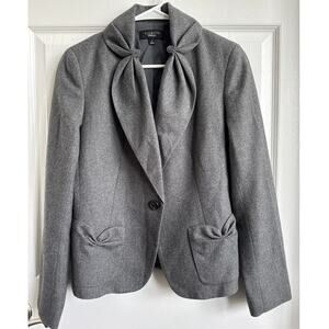 Talbots Kate Fit Wool Blazer Jacket grey pleated ruffel accents 4