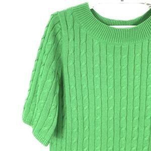 Kelly Green Cable Knit Sweater by Talbots Elbow-length sleeves. Jewel neckline like new condition