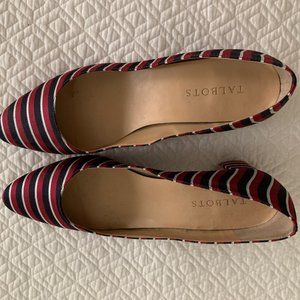 Beautiful red white & blue striped 2" block-heel fabric shoe from Talbots. Worn only once.