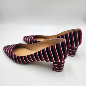Talbots Kelsey Womens striped satin fabric upper block heel pumps Sz 9.5M