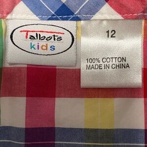 Beautiful girl dress in a bright multicolor checkered pattern. In excellent condition. Button front.