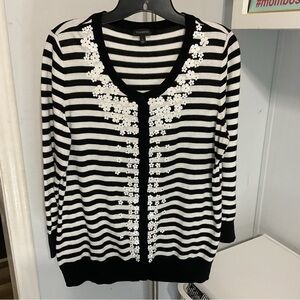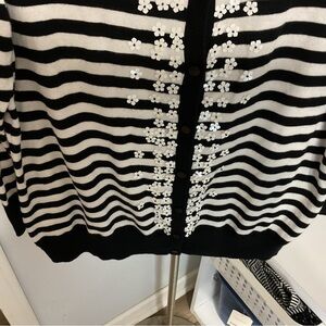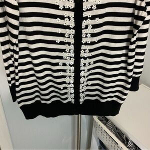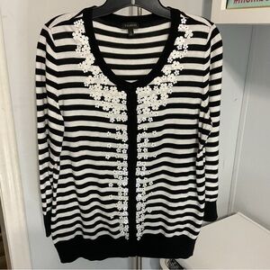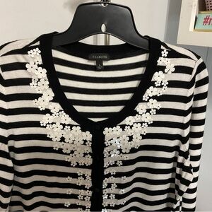 Talbots Knit B&W Stripped Cardigan Sweater Size L
